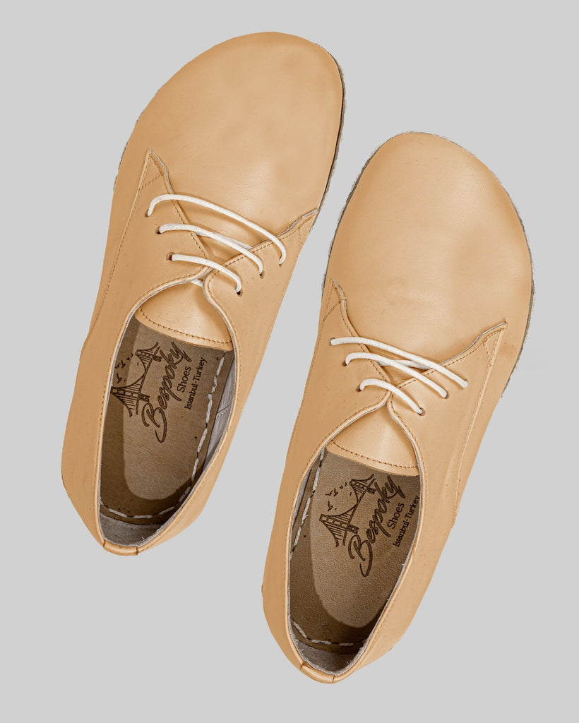 Bosphorus Lucas Beige Color Artisan Handcrafted Genuine Leather Grounding Barefoot Oxford Shoes For Men | Wide Toe Box | Flexible Sole | Zero Drop | Lightweight | Breathable | Eco-Friendly | Grounding Shoes | Minimalist Shoes