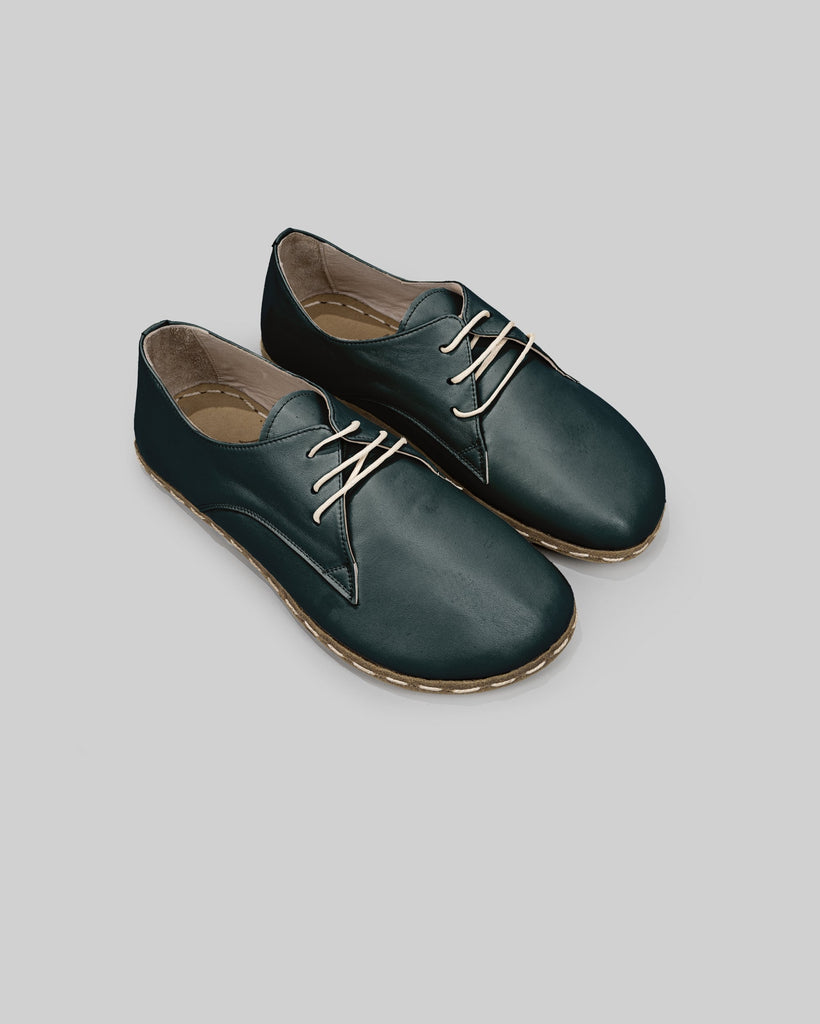 Bosphorus Dark Green Color Artisan Handcrafted Genuine Leather Grounding Barefoot Oxford Shoes For Men | Wide Toe Box | Flexible Sole | Zero Drop | Lightweight | Breathable | Eco-Friendly | Grounding Shoes | Minimalist Shoes