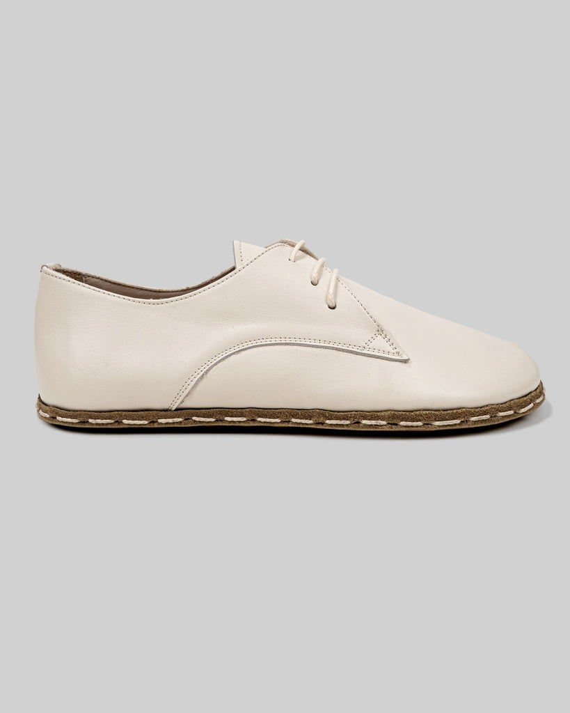 Bosphorus Cream Leather Color Artisan Handcrafted Genuine Leather Grounding Barefoot Oxford Shoes For Men | Wide Toe Box | Flexible Sole | Zero Drop | Lightweight | Breathable | Eco-Friendly | Grounding Shoes | Minimalist Shoes