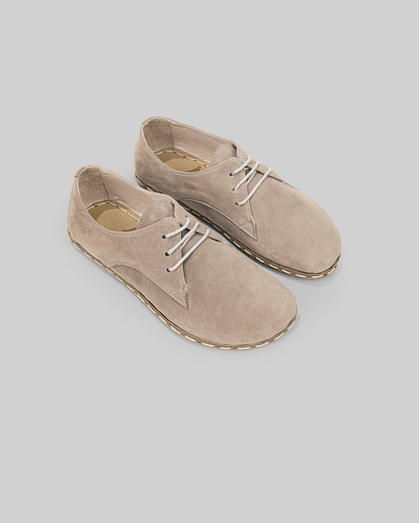 Bosphorus Beige Color Artisan Handcrafted Nubuck Genuine Leather Grounding Barefoot Oxford Shoes For Men | Wide Toe Box | Flexible Sole | Zero Drop | Lightweight | Breathable | Eco-Friendly | Grounding Shoes | Minimalist Shoes