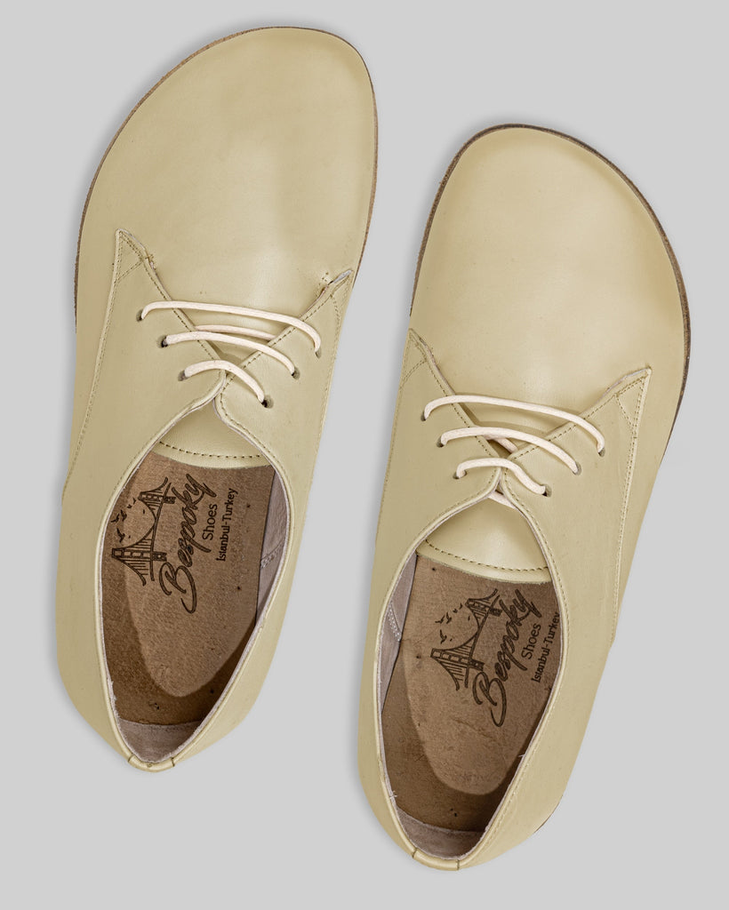 Bosphorus Beige Color Artisan Handcrafted Genuine Leather Grounding Barefoot Oxford Shoes For Men | Wide Toe Box | Flexible Sole | Zero Drop | Lightweight | Breathable | Eco-Friendly | Grounding Shoes | Minimalist Shoes
