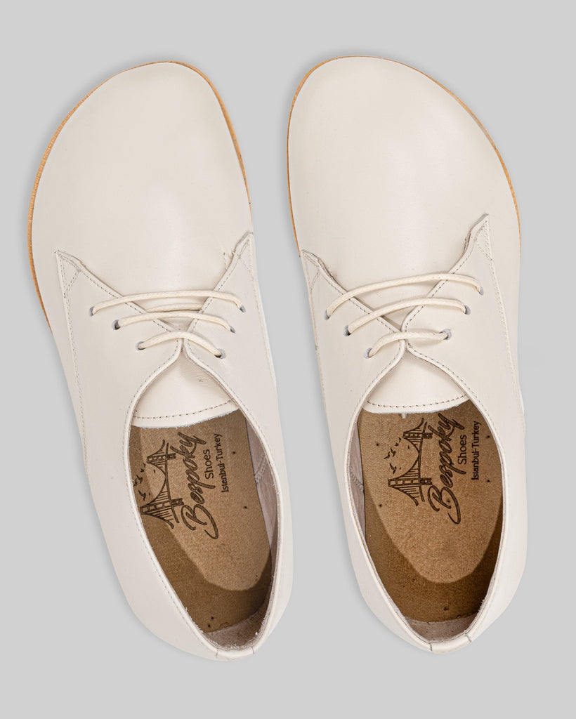 Bosphorus Cream Leather Color Artisan Handcrafted Genuine Leather Zero Drop Barefoot Oxford Shoes For Men | Wide Toe Box | Flexible Sole | Zero Drop | Lightweight | Breathable | Eco-Friendly | Grounding Shoes | Minimalist Shoes
