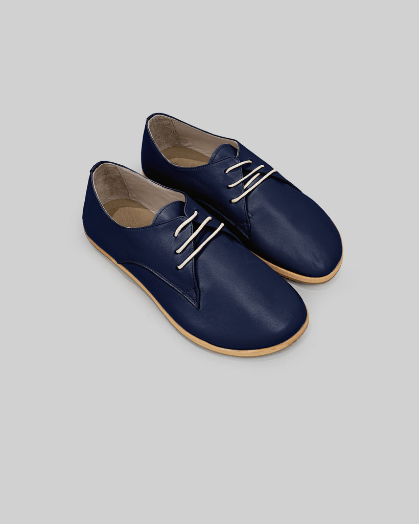 Bosphorus Navy Blue Color Artisan Handcrafted Genuine Leather Zero Drop Barefoot Oxford Shoes For Men | Wide Toe Box | Flexible Sole | Zero Drop | Lightweight | Breathable | Eco-Friendly | Grounding Shoes | Minimalist Shoes