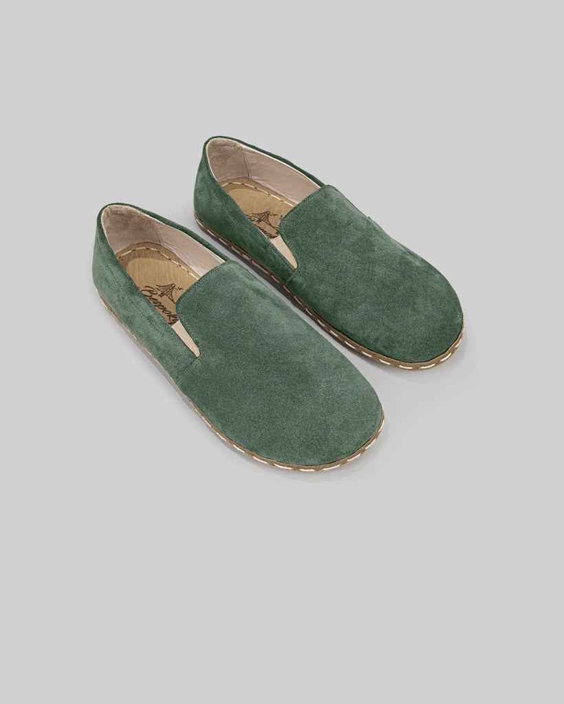 Eminonu Green Color Artisan Handcrafted Suede Genuine Leather Grounding Barefoot Shoes For Men | Wide Toe Box | Flexible Sole | Zero Drop | Lightweight | Breathable | Eco-Friendly | Grounding Shoes | Minimalist Shoes