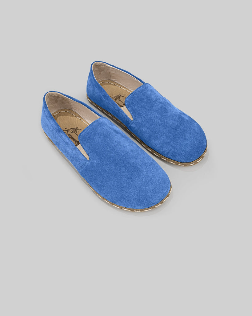 Eminonu Blue Color Artisan Handcrafted Suede Genuine Leather Grounding Barefoot Shoes For Men | Wide Toe Box | Flexible Sole | Zero Drop | Lightweight | Breathable | Eco-Friendly | Grounding Shoes | Minimalist Shoes