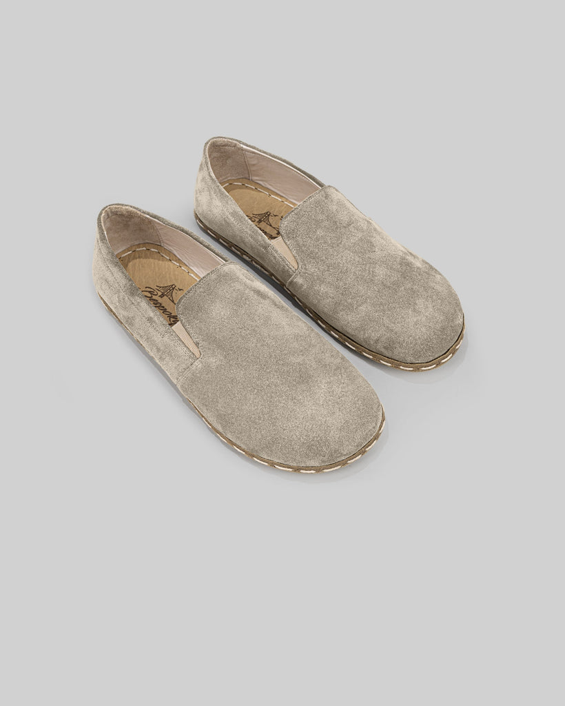 Eminonu Grey Color Artisan Handcrafted Suede Genuine Leather Grounding Barefoot Shoes For Men | Wide Toe Box | Flexible Sole | Zero Drop | Lightweight | Breathable | Eco-Friendly | Grounding Shoes | Minimalist Shoes