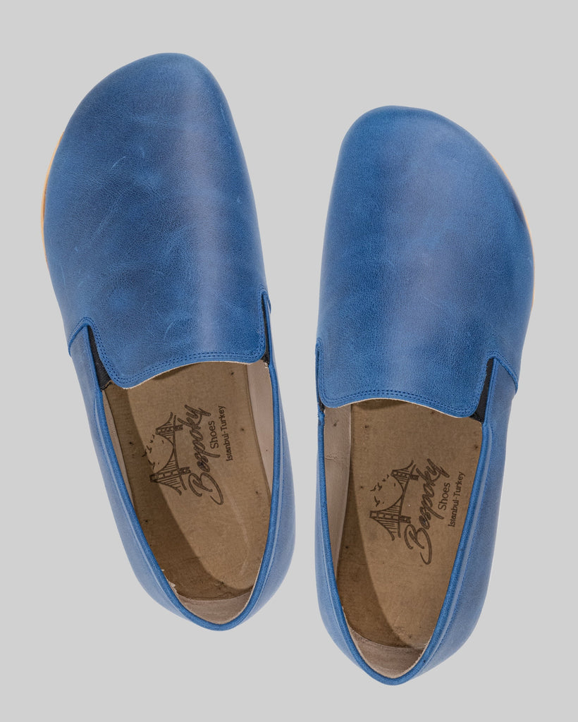 Eminonu Crazy Blue Color Color Artisan Handcrafted Genuine Leather Zero Drop Barefoot Shoes For Men | Wide Toe Box | Flexible Sole | Zero Drop | Lightweight | Breathable | Eco-Friendly | Grounding Shoes | Minimalist Shoes