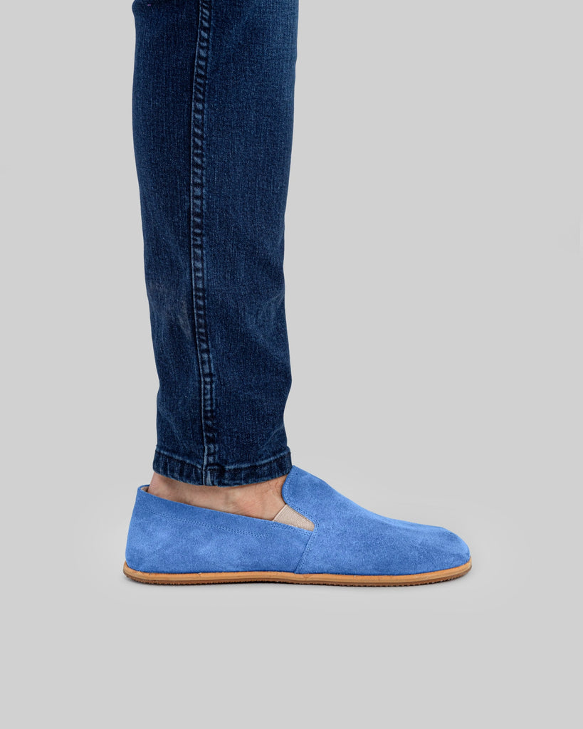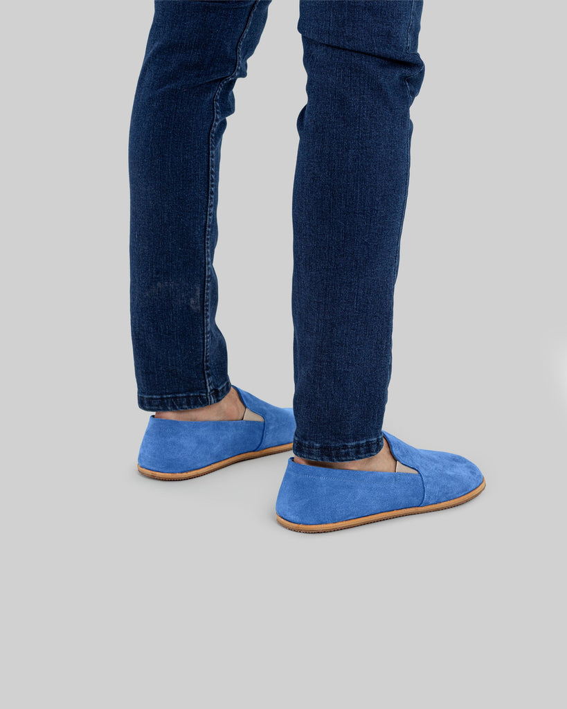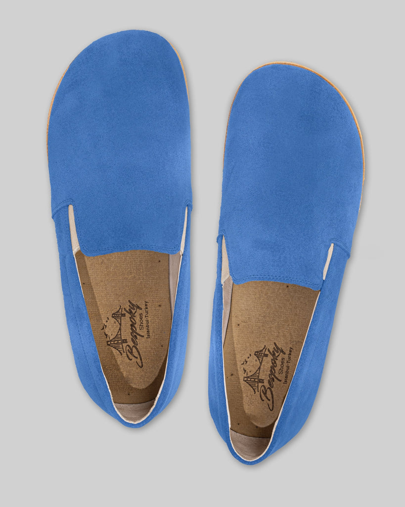 Eminonu Blue Color Artisan Handcrafted Suede Genuine Leather Zero Drop Barefoot Shoes For Men | Wide Toe Box | Flexible Sole | Zero Drop | Lightweight | Breathable | Eco-Friendly | Grounding Shoes | Minimalist Shoes