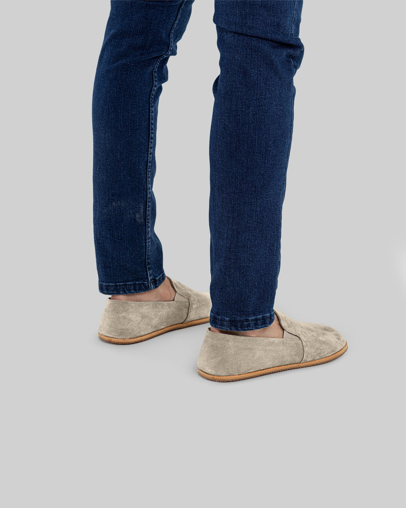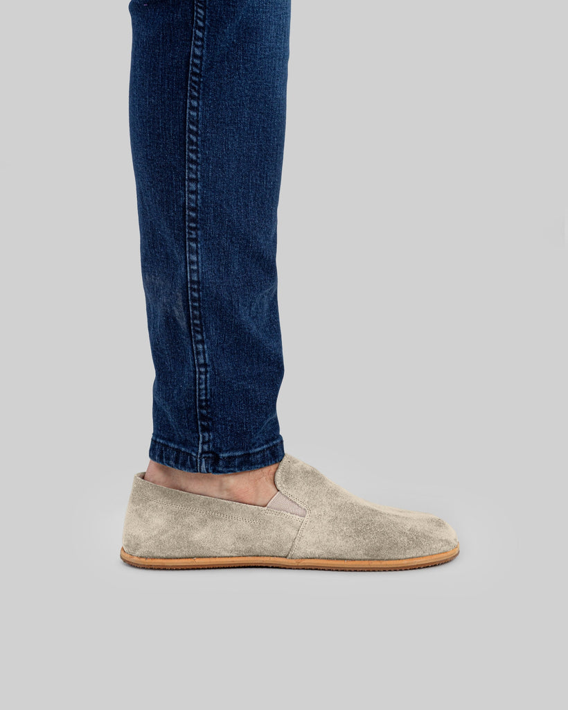 Eminonu Cream Color Artisan Handcrafted Suede Genuine Leather Zero Drop Barefoot Shoes For Men | Wide Toe Box | Flexible Sole | Zero Drop | Lightweight | Breathable | Eco-Friendly | Grounding Shoes | Minimalist Shoes