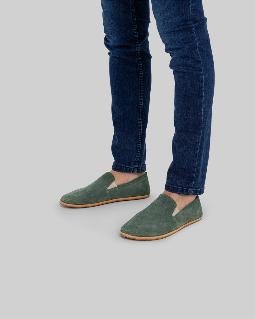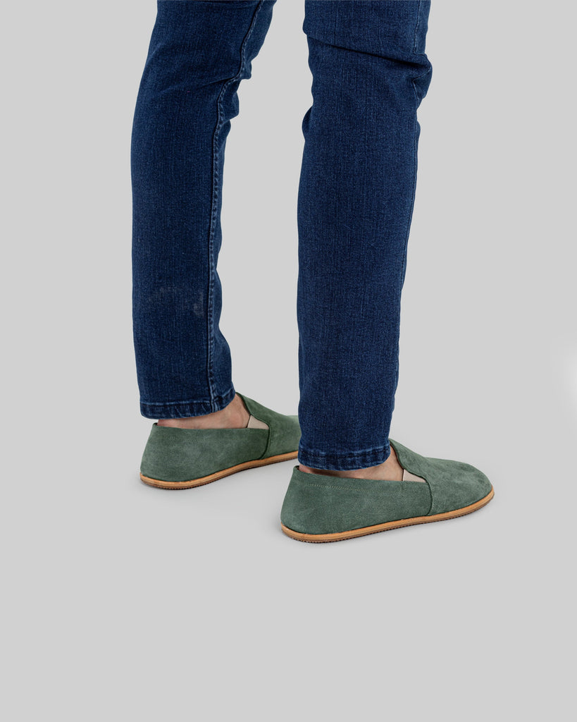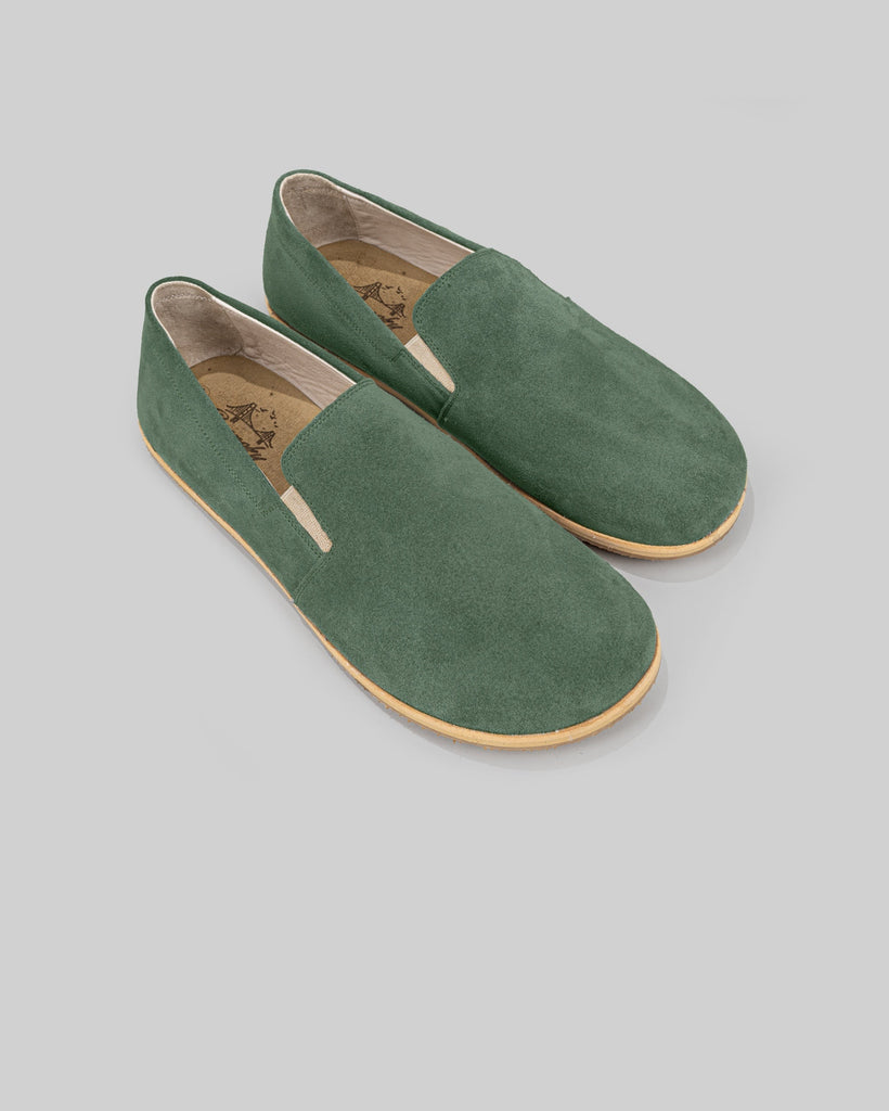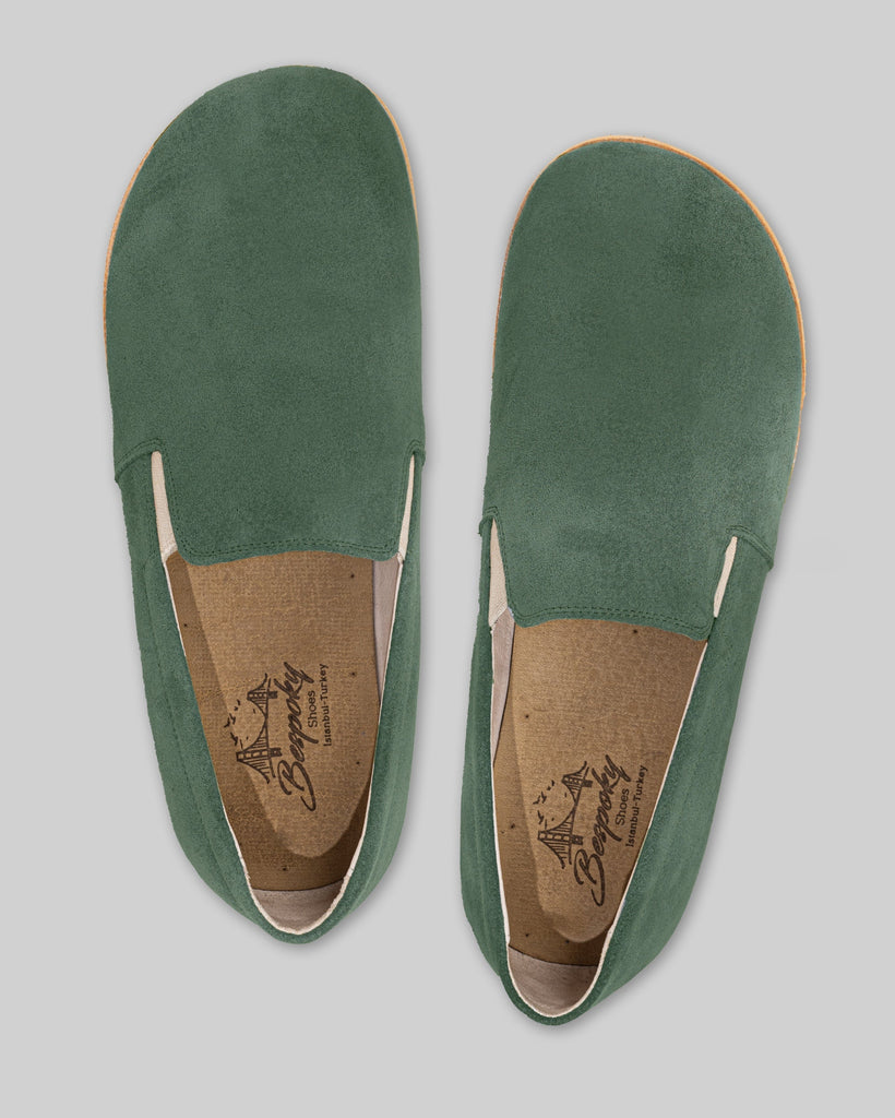 Eminonu Green Color Artisan Handcrafted Suede Genuine Leather Zero Drop Barefoot Shoes For Men | Wide Toe Box | Flexible Sole | Zero Drop | Lightweight | Breathable | Eco-Friendly | Grounding Shoes | Minimalist Shoes