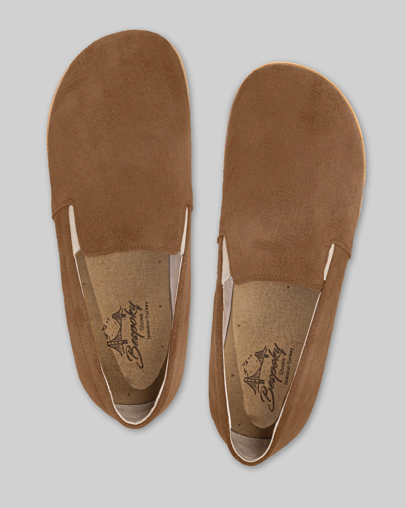 Eminonu Tan Color Artisan Handcrafted Suede Genuine Leather Zero Drop Barefoot Shoes For Men | Wide Toe Box | Flexible Sole | Zero Drop | Lightweight | Breathable | Eco-Friendly | Grounding Shoes | Minimalist Shoes