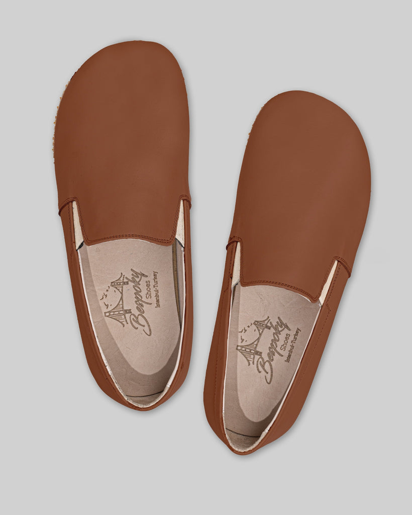 Eminonu Dark Tan Color Artisan Handcrafted Genuine Leather Zero Drop Barefoot Shoes For Men | Wide Toe Box | Flexible Sole | Zero Drop | Lightweight | Breathable | Eco-Friendly | Grounding Shoes | Minimalist Shoes