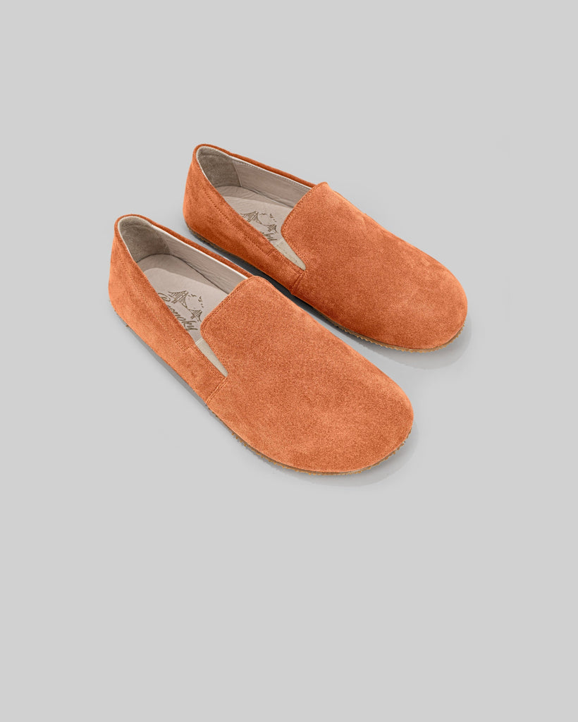 Eminonu Orange Color Artisan Handcrafted Suede Genuine Leather Zero Drop Barefoot Shoes For Men | Wide Toe Box | Flexible Sole | Zero Drop | Lightweight | Breathable | Eco-Friendly | Grounding Shoes | Minimalist Shoes