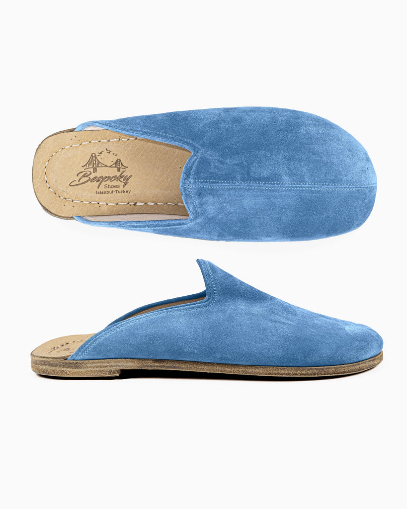 Pierre Loti Blue Color Artisan Handcrafted Suede Genuine Leather Grounding Barefoot Slipper For Men | Wide Toe Box | Flexible Sole | Zero Drop | Lightweight | Breathable | Eco-Friendly | Grounding Shoes | Minimalist Shoes