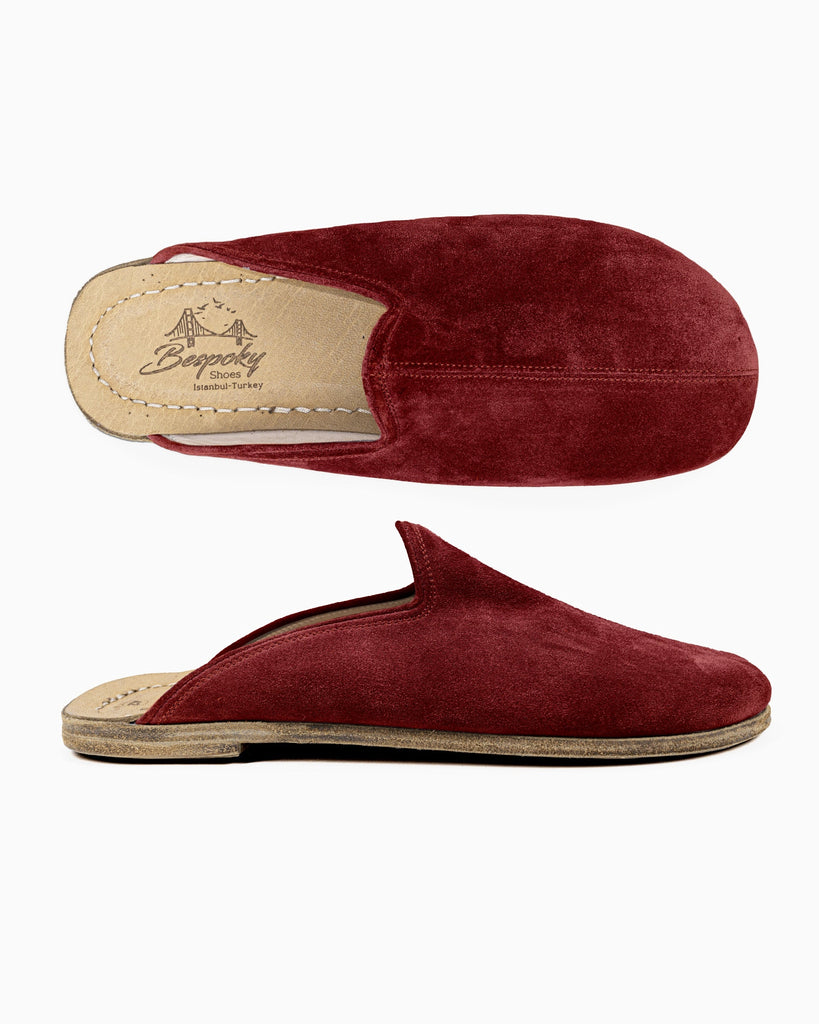 Pierre Loti Burgundy Color Artisan Handcrafted Suede Genuine Leather Grounding Barefoot Slipper For Men | Wide Toe Box | Flexible Sole | Zero Drop | Lightweight | Breathable | Eco-Friendly | Grounding Shoes | Minimalist Shoes
