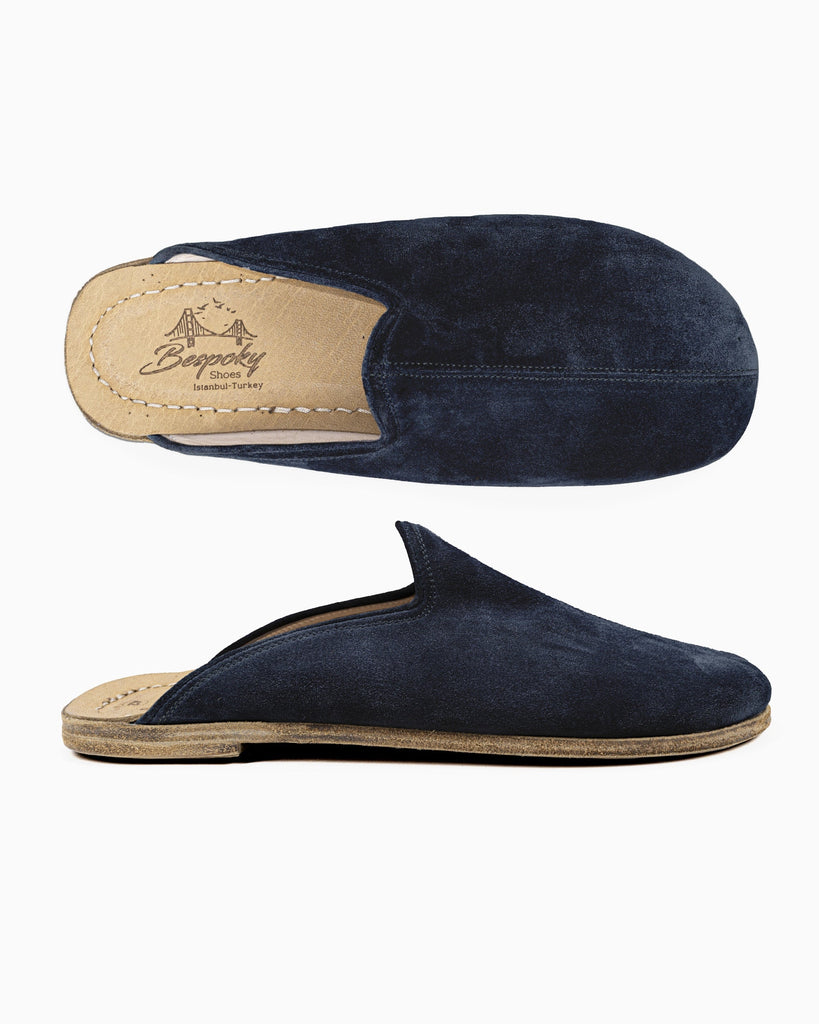 Pierre Loti Navy Color Artisan Handcrafted Suede Genuine Leather Grounding Barefoot Slipper For Men | Wide Toe Box | Flexible Sole | Zero Drop | Lightweight | Breathable | Eco-Friendly | Grounding Shoes | Minimalist Shoes