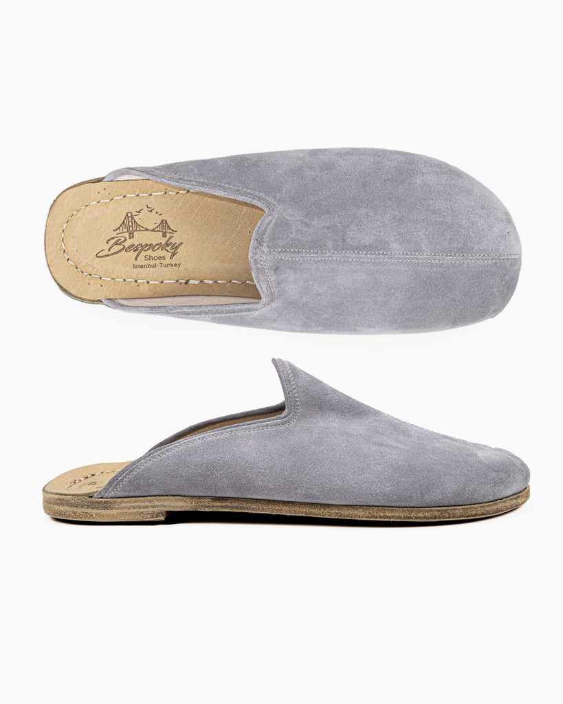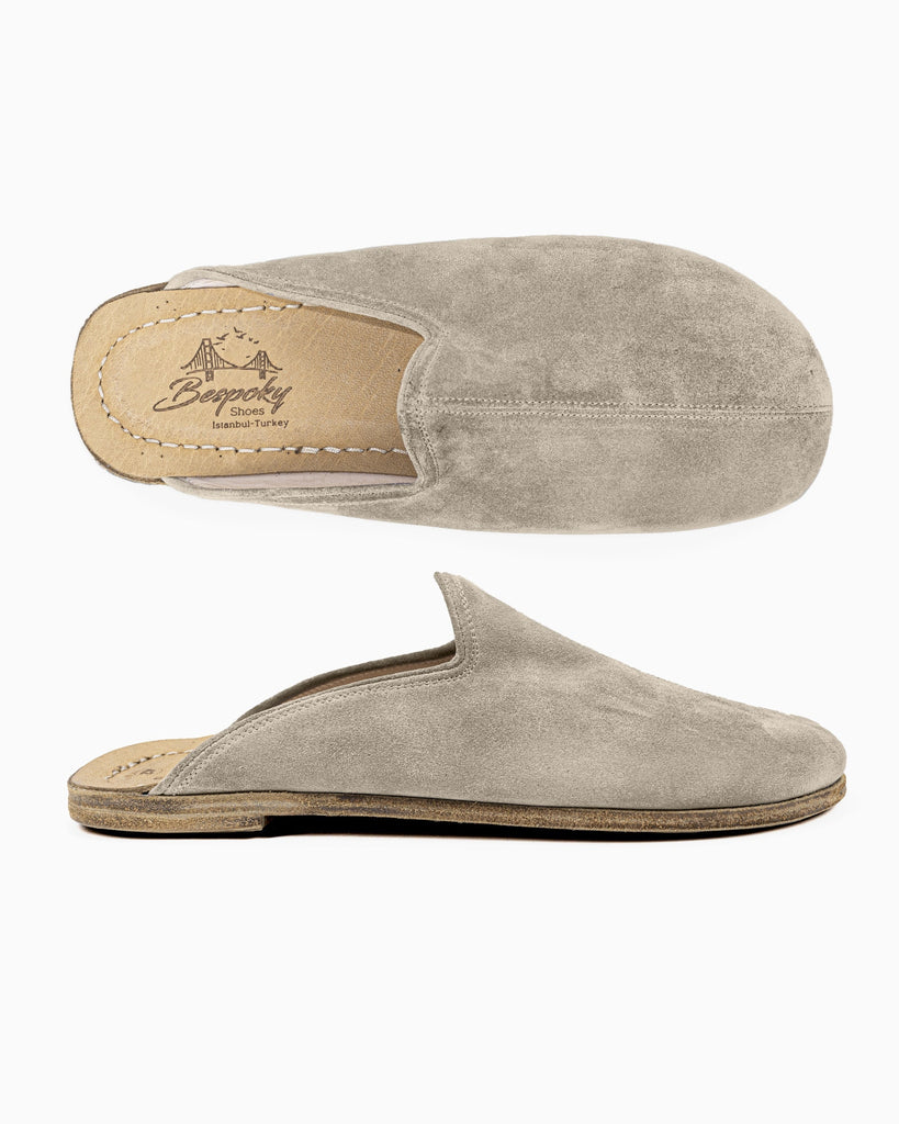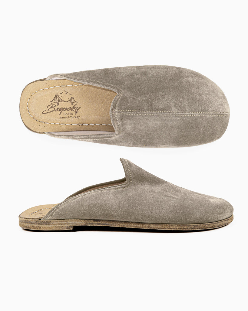 Pierre Loti Grey Color Artisan Handcrafted Suede Genuine Leather Grounding Barefoot Slipper For Men | Wide Toe Box | Flexible Sole | Zero Drop | Lightweight | Breathable | Eco-Friendly | Grounding Shoes | Minimalist Shoes