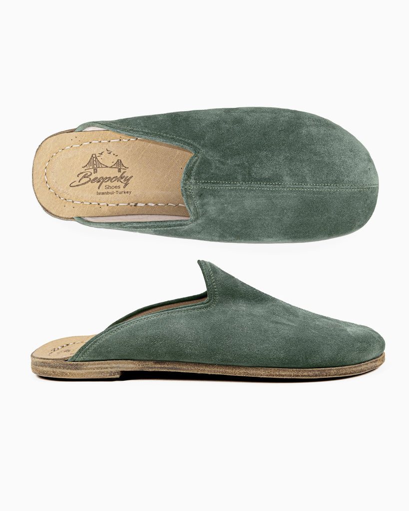 Pierre Loti Green Color Artisan Handcrafted Suede Genuine Leather Grounding Barefoot Slipper For Men | Wide Toe Box | Flexible Sole | Zero Drop | Lightweight | Breathable | Eco-Friendly | Grounding Shoes | Minimalist Shoes