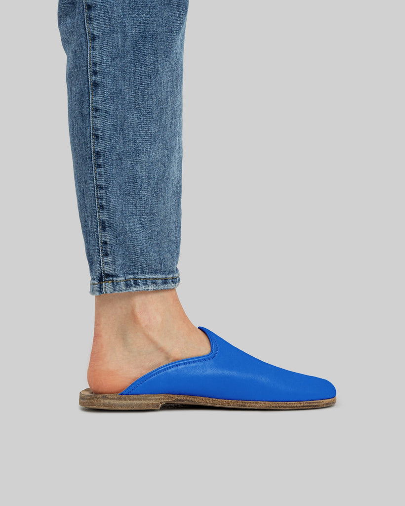 Golden Horn Blue Color Artisan Handcrafted Genuine Leather Grounding Barefoot Shearling Slipper For Men | Wide Toe Box | Flexible Sole | Zero Drop | Lightweight | Breathable | Eco-Friendly | Grounding Shoes | Minimalist Shoes