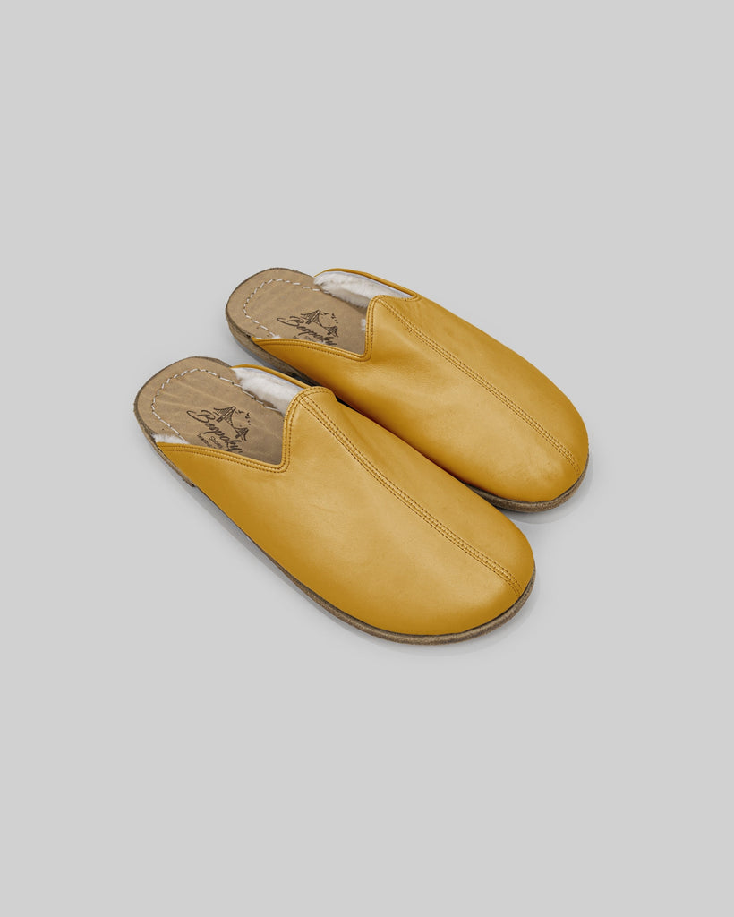 Golden Horn Mustard Yellow Color Artisan Handcrafted Genuine Leather Grounding Barefoot Shearling Slipper For Men | Wide Toe Box | Flexible Sole | Zero Drop | Lightweight | Breathable | Eco-Friendly | Grounding Shoes | Minimalist Shoes