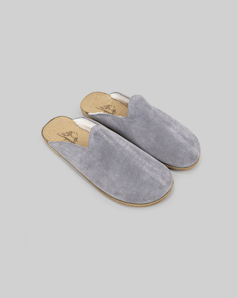 Golden Horn Grey Color Artisan Handcrafted Suede Genuine Leather Grounding Barefoot Shearling Slipper For Men | Wide Toe Box | Flexible Sole | Zero Drop | Lightweight | Breathable | Eco-Friendly | Grounding Shoes | Minimalist Shoes