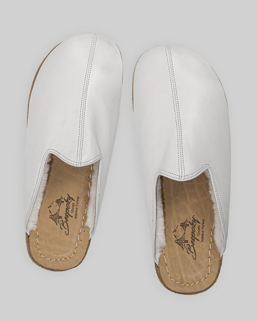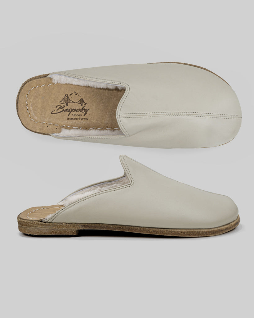 Golden Horn White Color Artisan Handcrafted Genuine Leather Grounding Barefoot Shearling Slipper For Men | Wide Toe Box | Flexible Sole | Zero Drop | Lightweight | Breathable | Eco-Friendly | Grounding Shoes | Minimalist Shoes