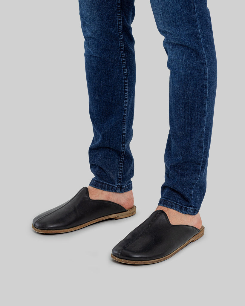 Golden Horn Black Color Artisan Handcrafted Genuine Leather Grounding Barefoot Shearling Slipper For Men | Wide Toe Box | Flexible Sole | Zero Drop | Lightweight | Breathable | Eco-Friendly | Grounding Shoes | Minimalist Shoes
