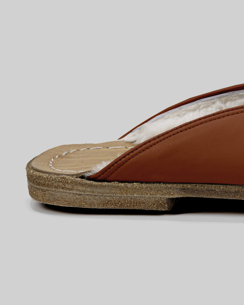 Golden Horn Dark Tan Color Artisan Handcrafted Genuine Leather Grounding Barefoot Shearling Slipper For Men | Wide Toe Box | Flexible Sole | Zero Drop | Lightweight | Breathable | Eco-Friendly | Grounding Shoes | Minimalist Shoes
