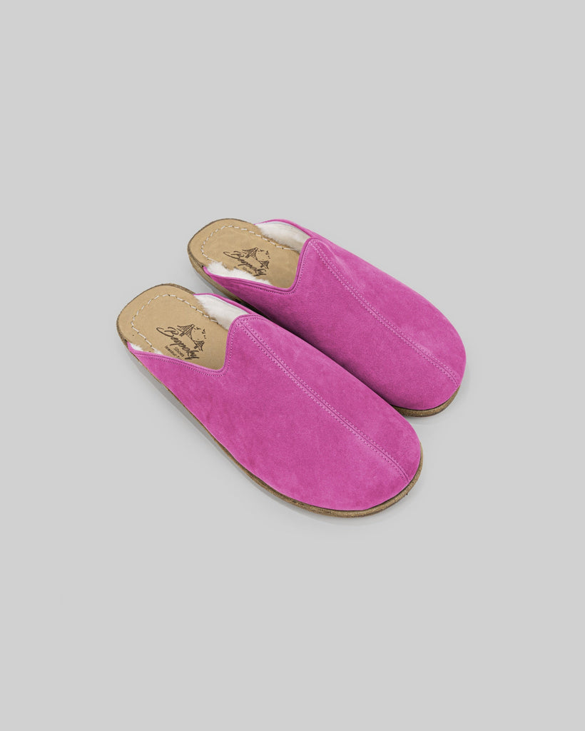 Golden Horn Fuchsia Color Artisan Handcrafted Genuine Leather Grounding Barefoot Shearling Slipper For Men | Wide Toe Box | Flexible Sole | Zero Drop | Lightweight | Breathable | Eco-Friendly | Grounding Shoes | Minimalist Shoes
