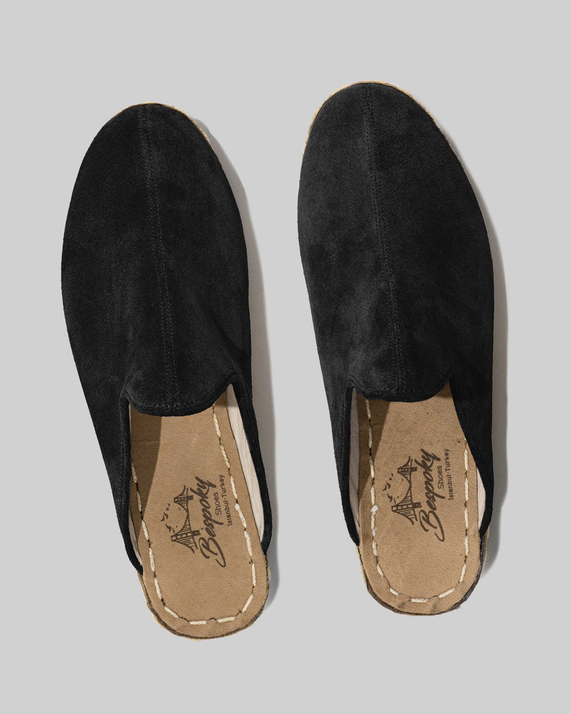 Side Black Color Artisan Handcrafted Suede Genuine Leather Zero Drop Slippers For Men | Wide Toe Box | Flexible Sole | Zero Drop | Lightweight | Breathable | Eco-Friendly | Grounding Shoes | Minimalist Shoes