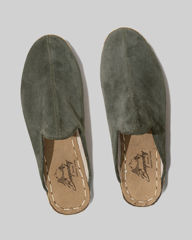 Side Green Color Artisan Handcrafted Suede Genuine Leather Zero Drop Slippers For Men | Wide Toe Box | Flexible Sole | Zero Drop | Lightweight | Breathable | Eco-Friendly | Grounding Shoes | Minimalist Shoes