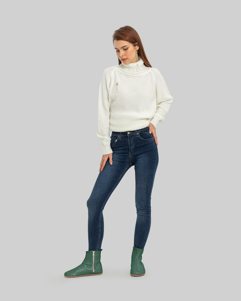 Cappadocia Green Color Artisan Handcrafted Genuine Leather Zero Drop Barefoot Chelsea Boot For Women | Wide Toe Box | Flexible Sole | Zero Drop | Lightweight | Breathable | Eco-Friendly | Grounding Shoes | Minimalist Shoes