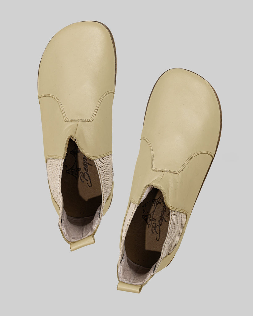 Cappadocia Beige Color Artisan Handcrafted Genuine Leather Grounding Barefoot Chelsea Boot For Women | Wide Toe Box | Flexible Sole | Zero Drop | Lightweight | Breathable | Eco-Friendly | Grounding Shoes | Minimalist Shoes