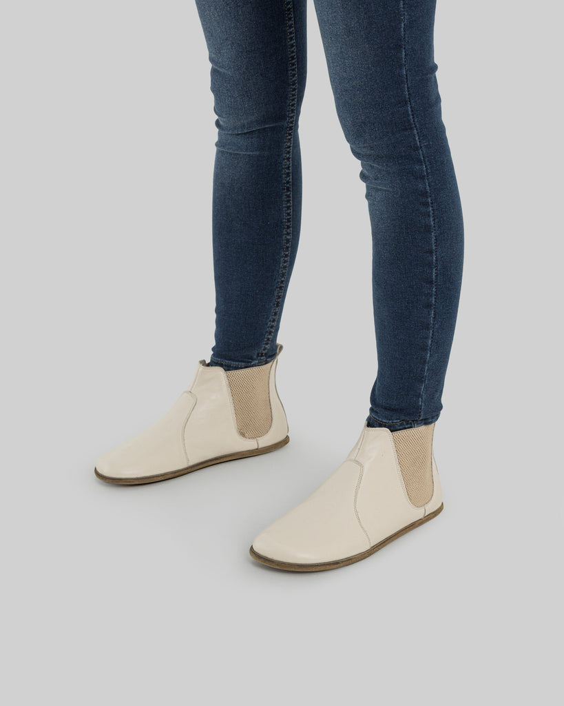 Cappadocia Cream Leather Color Artisan Handcrafted Genuine Leather Grounding Barefoot Chelsea Boot For Women | Wide Toe Box | Flexible Sole | Zero Drop | Lightweight | Breathable | Eco-Friendly | Grounding Shoes | Minimalist Shoes