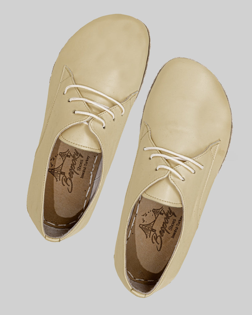 Bosphorus Cream Leather Color Artisan Handcrafted Genuine Leather Grounding Barefoot Oxford Shoes For Women | Wide Toe Box | Flexible Sole | Zero Drop | Lightweight | Breathable | Eco-Friendly | Grounding Shoes | Minimalist Shoes