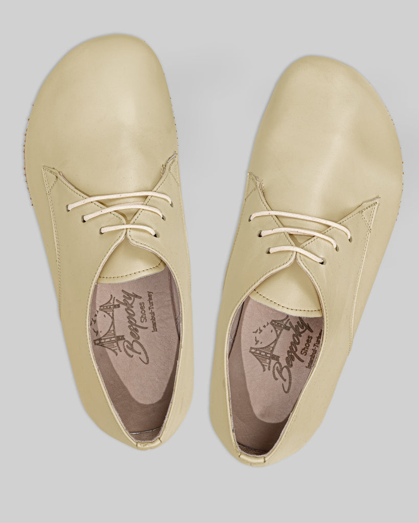 Bosphorus Lucas Beige Color Artisan Handcrafted Genuine Leather Zero Drop Barefoot Oxford Shoes For Women | Wide Toe Box | Flexible Sole | Zero Drop | Lightweight | Breathable | Eco-Friendly | Grounding Shoes | Minimalist Shoes