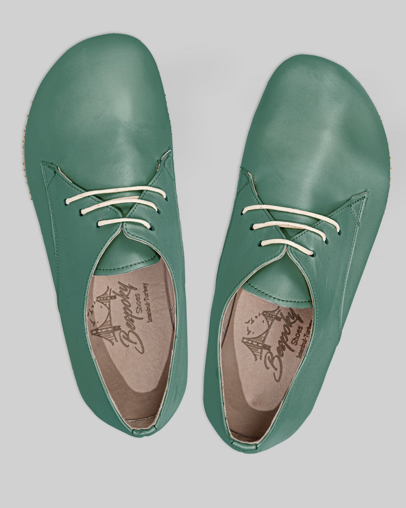 Bosphorus Green Color Artisan Handcrafted Genuine Leather Zero Drop Barefoot Oxford Shoes For Women | Wide Toe Box | Flexible Sole | Zero Drop | Lightweight | Breathable | Eco-Friendly | Grounding Shoes | Minimalist Shoes