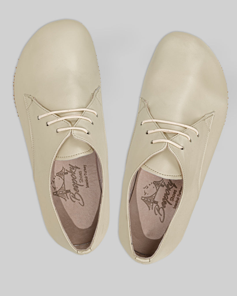Bosphorus Cream Leather Color Artisan Handcrafted Genuine Leather Zero Drop Barefoot Oxford Shoes For Women | Wide Toe Box | Flexible Sole | Zero Drop | Lightweight | Breathable | Eco-Friendly | Grounding Shoes | Minimalist Shoes