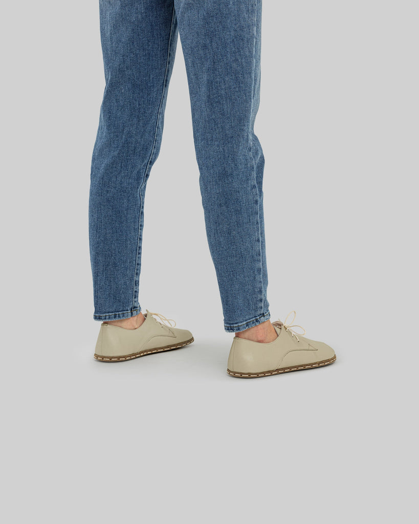 Bosphorus Beige Color Artisan Handcrafted Genuine Leather Grounding Barefoot Oxford Shoes For Women | Wide Toe Box | Flexible Sole | Zero Drop | Lightweight | Breathable | Eco-Friendly | Grounding Shoes | Minimalist Shoes