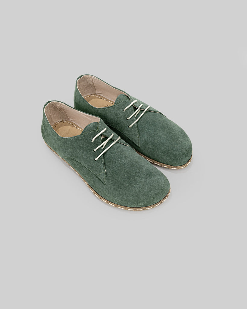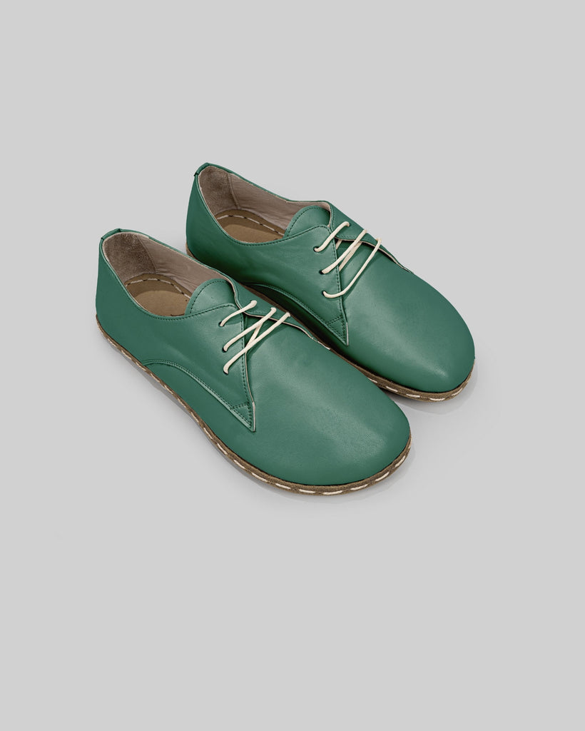 Bosphorus Green Color Artisan Handcrafted Genuine Leather Grounding Barefoot Oxford Shoes For Women | Wide Toe Box | Flexible Sole | Zero Drop | Lightweight | Breathable | Eco-Friendly | Grounding Shoes | Minimalist Shoes