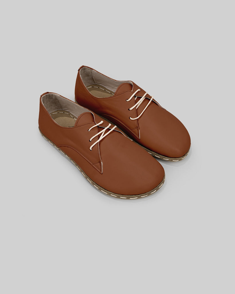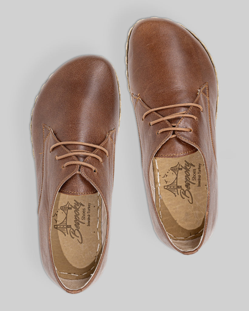 Bosphorus Dark Tan Color Artisan Handcrafted Genuine Leather Grounding Barefoot Oxford Shoes For Women | Wide Toe Box | Flexible Sole | Zero Drop | Lightweight | Breathable | Eco-Friendly | Grounding Shoes | Minimalist Shoes