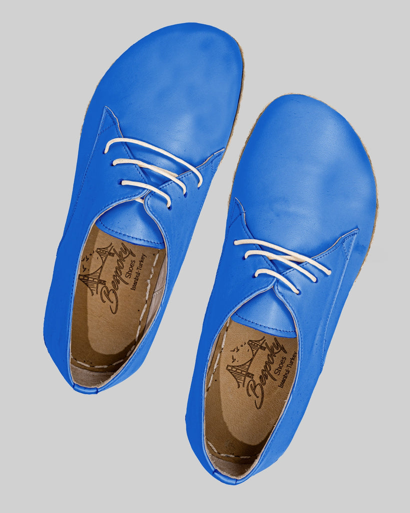 Bosphorus Blue Color Artisan Handcrafted Genuine Leather Grounding Barefoot Oxford Shoes For Women | Wide Toe Box | Flexible Sole | Zero Drop | Lightweight | Breathable | Eco-Friendly | Grounding Shoes | Minimalist Shoes