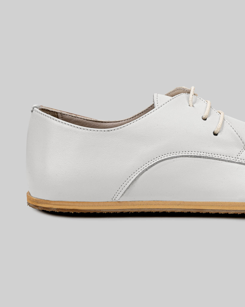 Bosphorus White Color Artisan Handcrafted Genuine Leather Zero Drop Barefoot Oxford Shoes For Women | Wide Toe Box | Flexible Sole | Zero Drop | Lightweight | Breathable | Eco-Friendly | Grounding Shoes | Minimalist Shoes