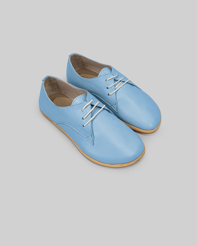 Bosphorus Baby Blue Color Artisan Handcrafted Genuine Leather Zero Drop Barefoot Oxford Shoes For Women | Wide Toe Box | Flexible Sole | Zero Drop | Lightweight | Breathable | Eco-Friendly | Grounding Shoes | Minimalist Shoes