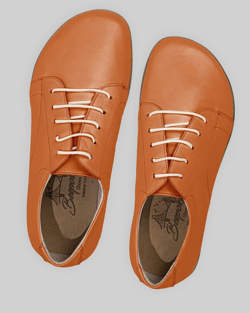 Taksim Orange Color Artisan Handcrafted Genuine Leather Grounding Barefoot Sneaker For Women | Wide Toe Box | Flexible Sole | Zero Drop | Lightweight | Breathable | Eco-Friendly | Grounding Shoes | Minimalist Shoes
