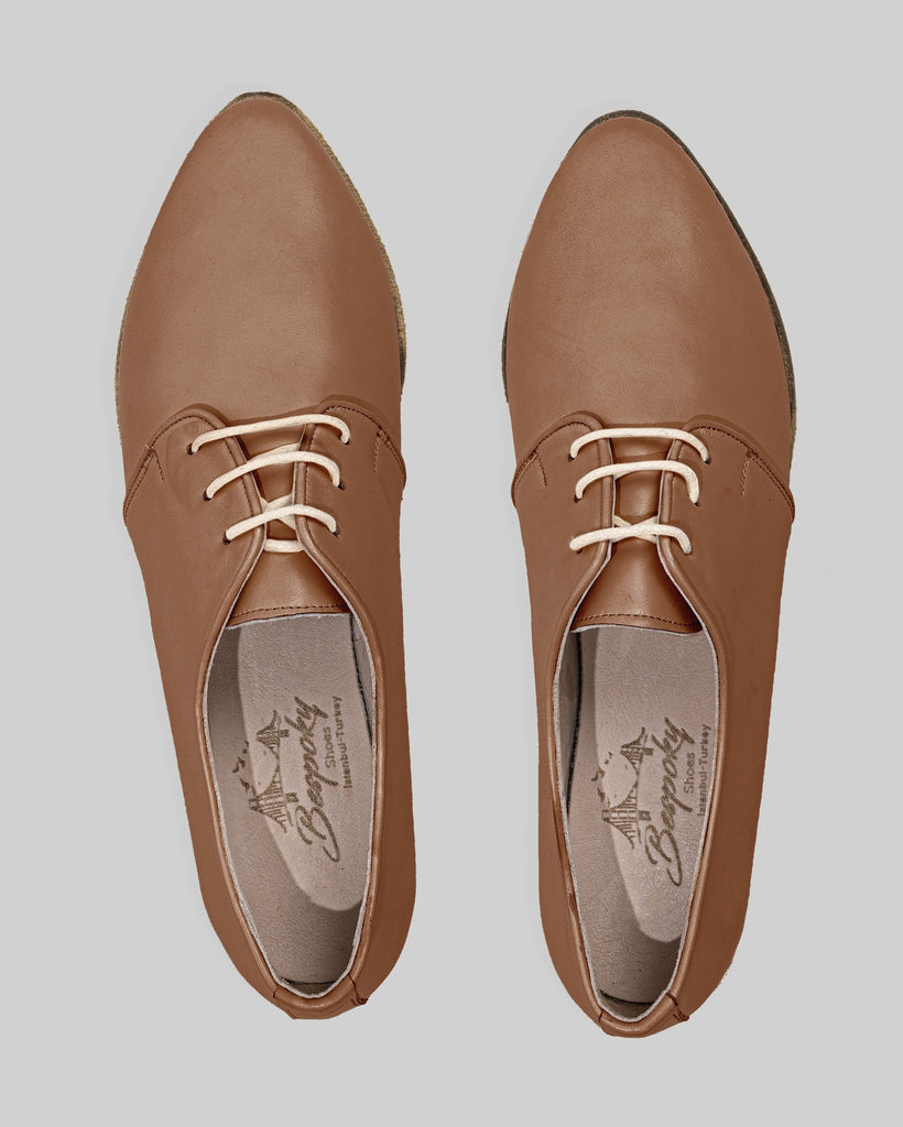 Mina Light Tan Color Artisan Handcrafted Genuine Leather Grounding Pointed Toe Oxford Shoes For Women | Wide Toe Box | Flexible Sole | Zero Drop | Lightweight | Breathable | Eco-Friendly | Grounding Shoes | Minimalist Shoes