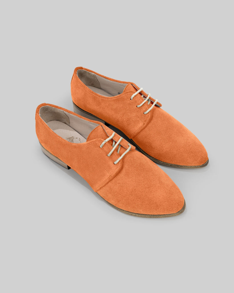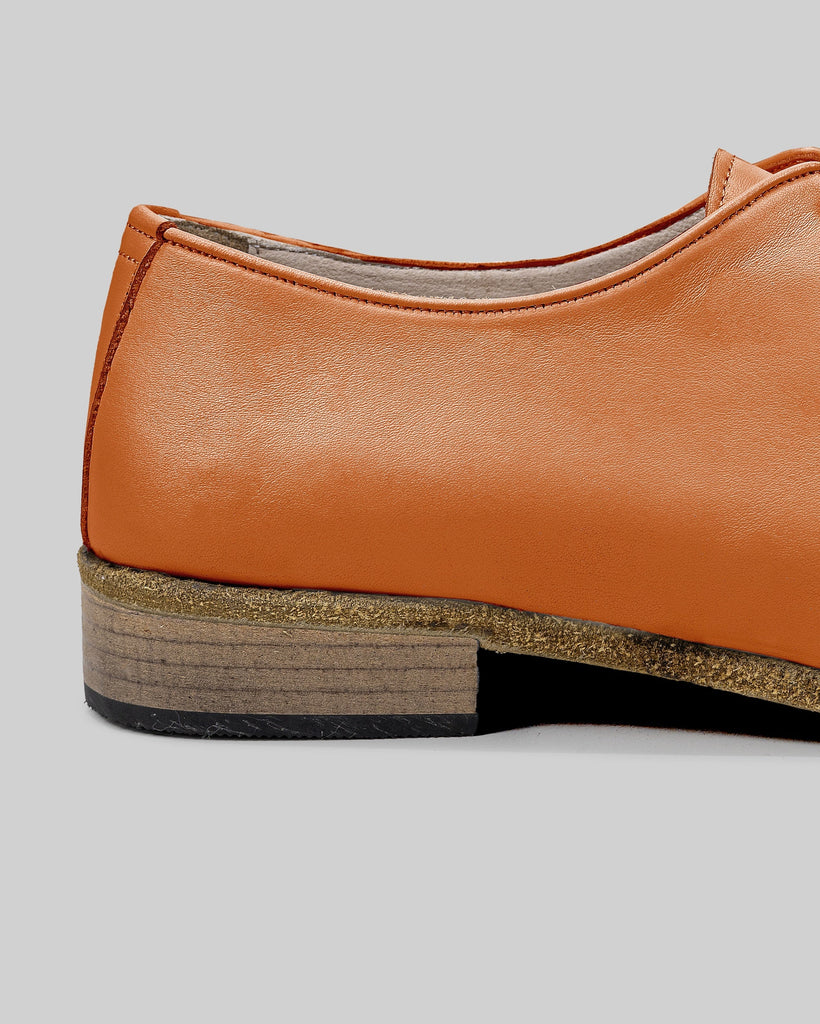 Mina Orange Color Artisan Handcrafted Genuine Leather Grounding Pointed Toe Oxford Shoes For Women | Wide Toe Box | Flexible Sole | Zero Drop | Lightweight | Breathable | Eco-Friendly | Grounding Shoes | Minimalist Shoes