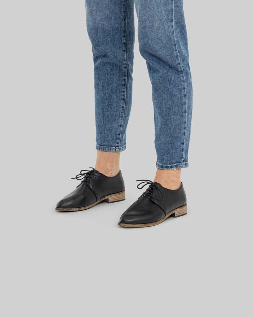 Mina Black Color Artisan Handcrafted Genuine Leather Grounding Pointed Toe Oxford Shoes For Women | Wide Toe Box | Flexible Sole | Zero Drop | Lightweight | Breathable | Eco-Friendly | Grounding Shoes | Minimalist Shoes