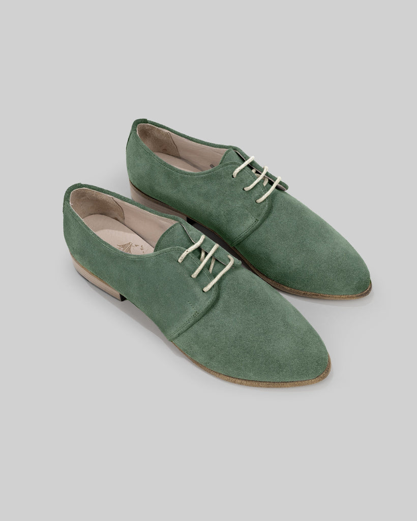 Mina Green Color Artisan Handcrafted Genuine Leather Grounding Pointed Toe Oxford Shoes For Women | Wide Toe Box | Flexible Sole | Zero Drop | Lightweight | Breathable | Eco-Friendly | Grounding Shoes | Minimalist Shoes