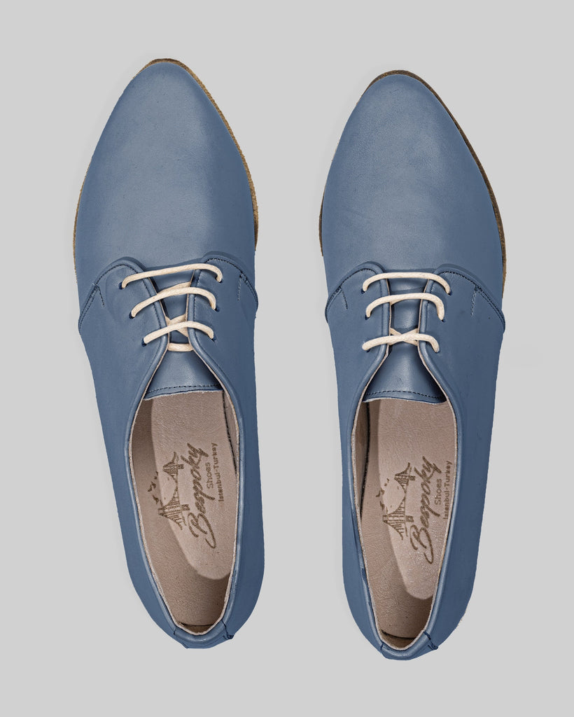 Mina Jean Blue Color Artisan Handcrafted Genuine Leather Grounding Pointed Toe Oxford Shoes For Women | Wide Toe Box | Flexible Sole | Zero Drop | Lightweight | Breathable | Eco-Friendly | Grounding Shoes | Minimalist Shoes